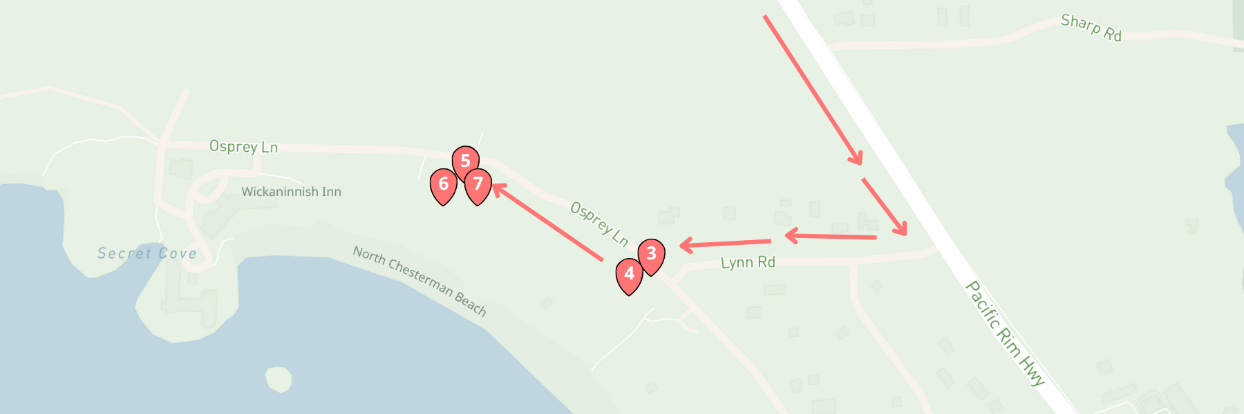 To continue this art walk, head towards the Dan Law’s Driftwood Ravens on two plinths overlooking North Chesterman Beach.