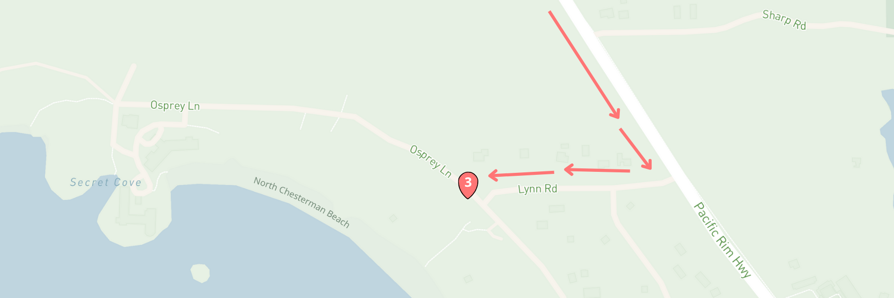 Waves IV is part of artist Deanna Lankin’s two-year exploration of waves. This particular wave was inspired by nearby Chesterman Beach and expresses Lankin’s love of the ocean. Featured on the bin wrapper at the the entrance to North Chesterman Beach, it is a commissioned work by District of Tofino.